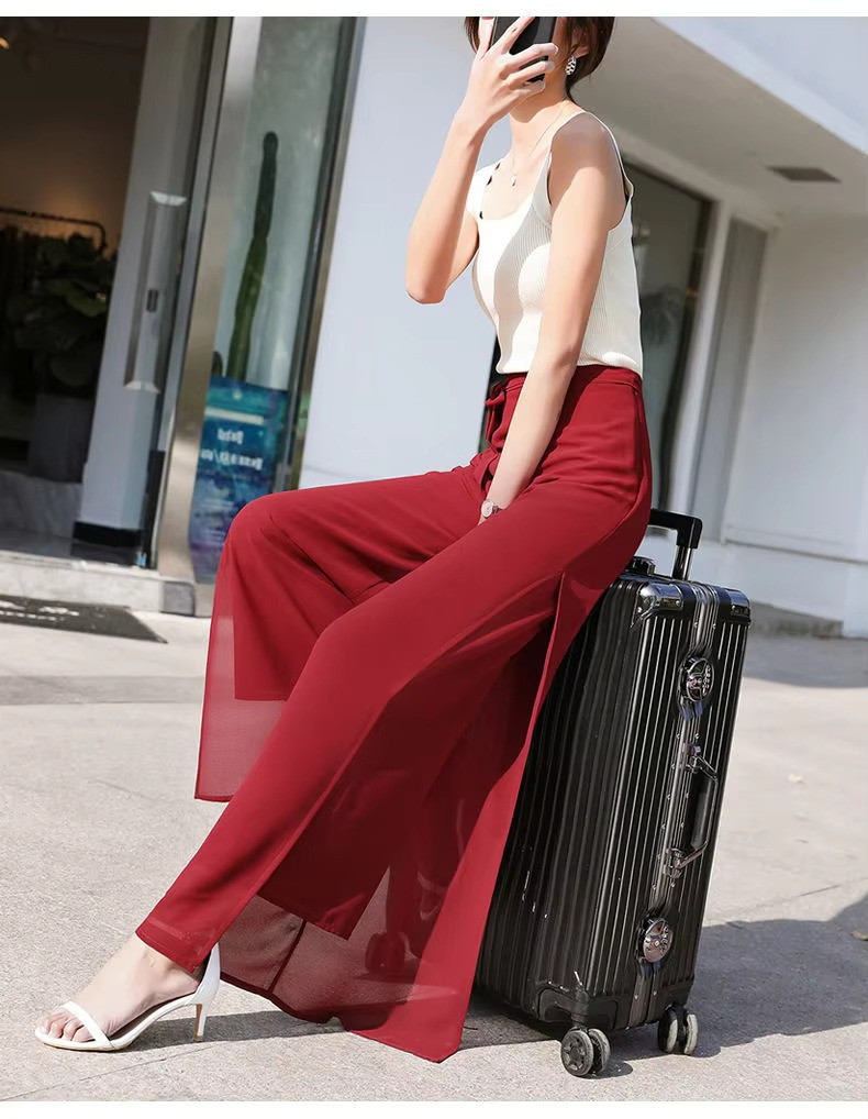 Hign-concerned Chemical None Season Summer Age JUNIOR Place Of Origin China (mainland) Model NumberPants Pant Style Wide leg pants Front StyleFlat Waist Typelow Pattern TypeSolid Decoration PATCHWORK Fabric TypeChiffon Fit TypeSKINNY Style Casual Length Ankle-Length PantsMaterial POLYESTER Gender WOMEN Origin Mainland ChinaCN Fujian